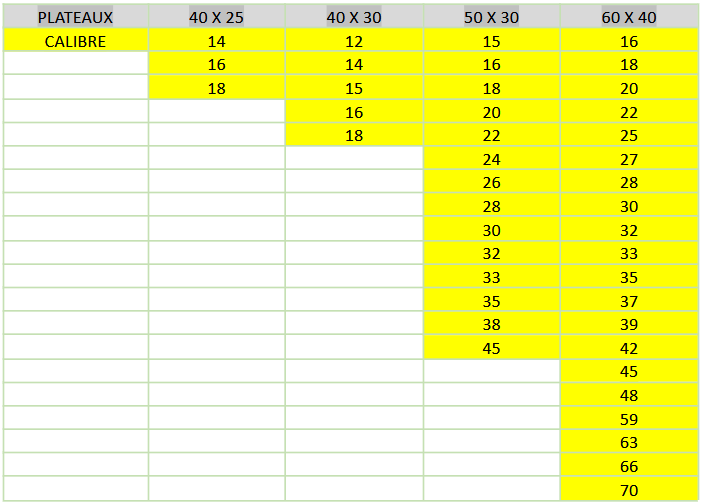 Elles se placent à la base de la caisse et des niveaux d'alvéoles avec des fruits sont ajoutés à l'intérieur de la caisse.